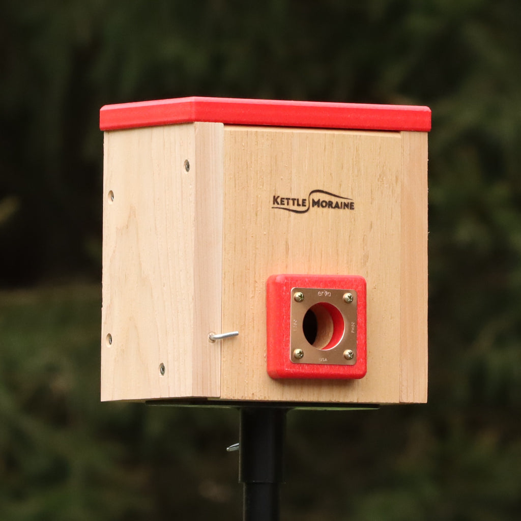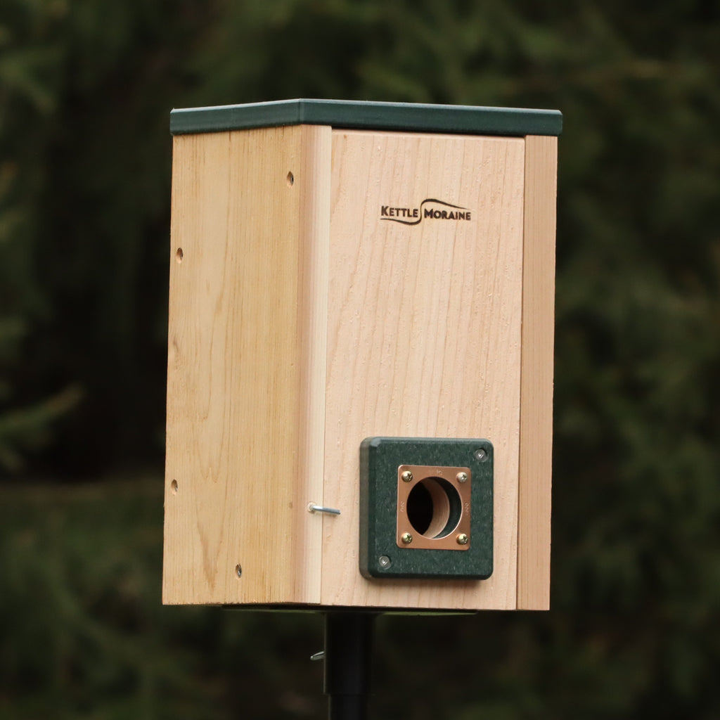 Same features as our all cedar roosting boxes now with a durable plastic roof and guard.